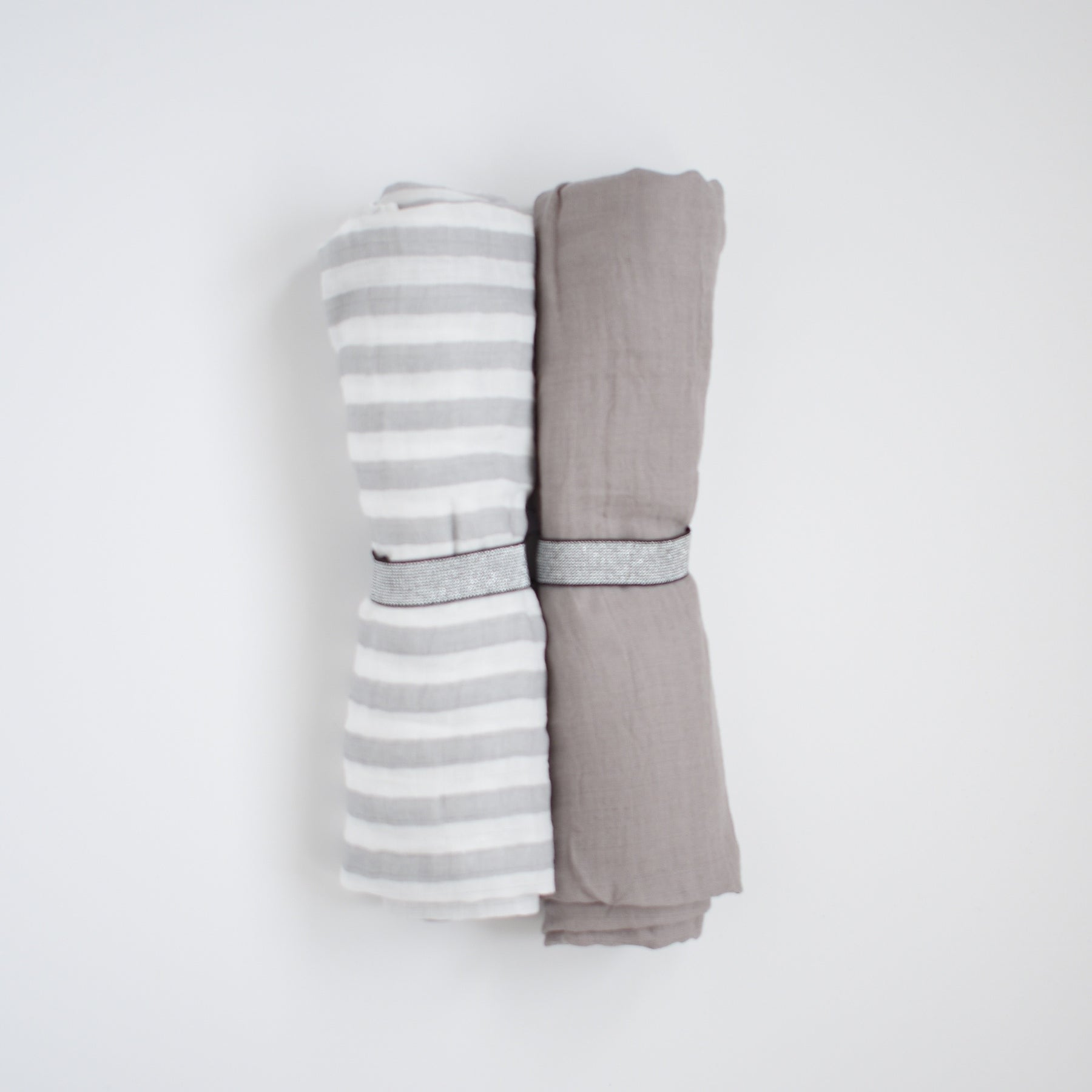 Extra large supersoft muslin square in grey stripe. Generous 120cm x 120cm size; perfect for swaddling, using as a blanket, as a pram shade,  and much more.