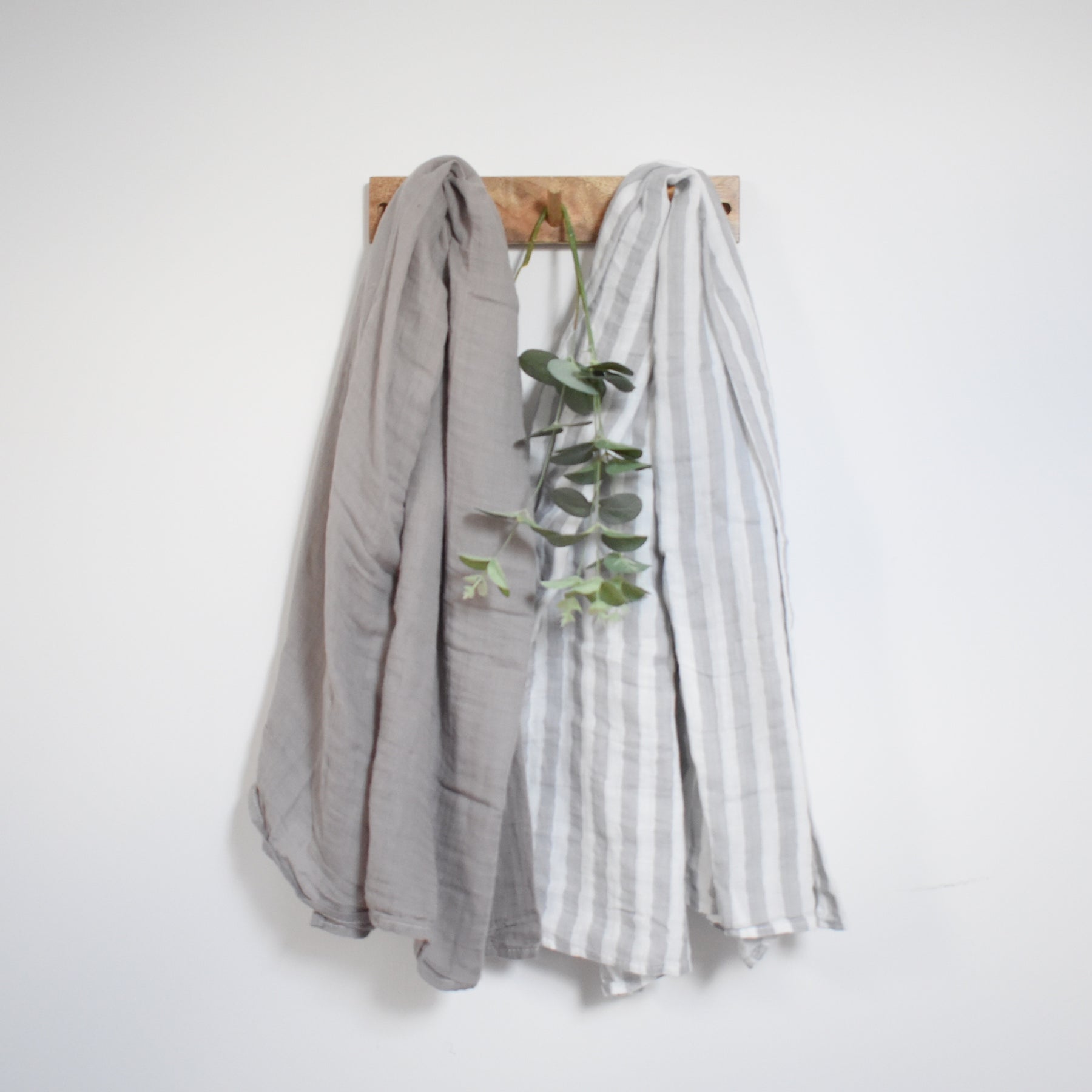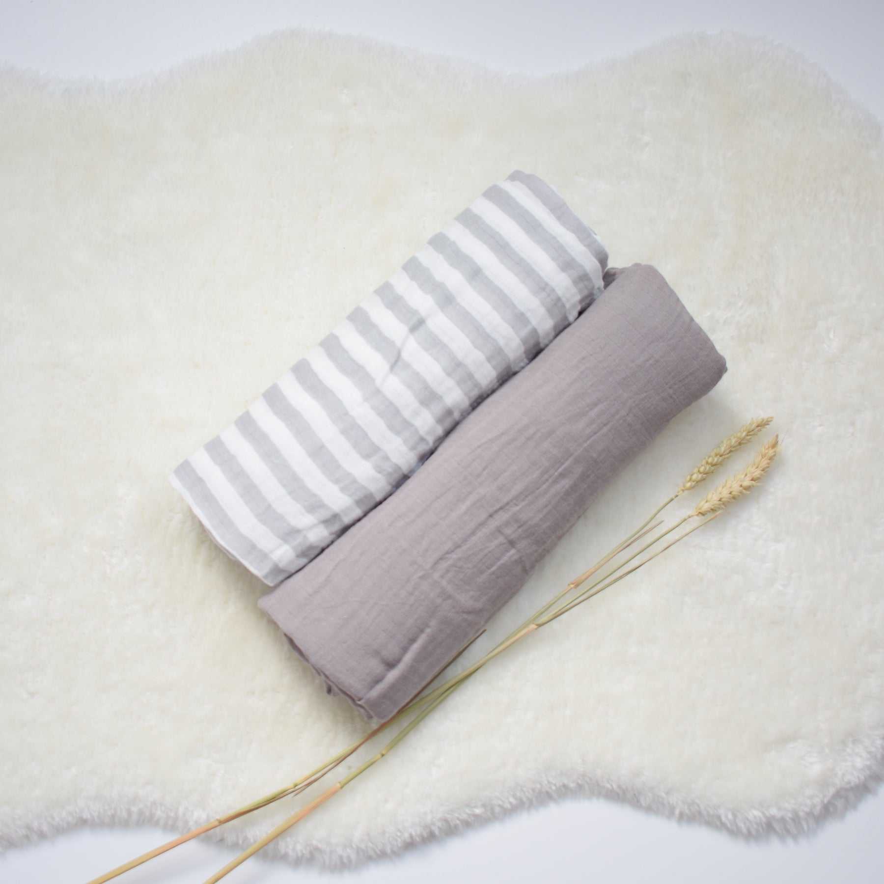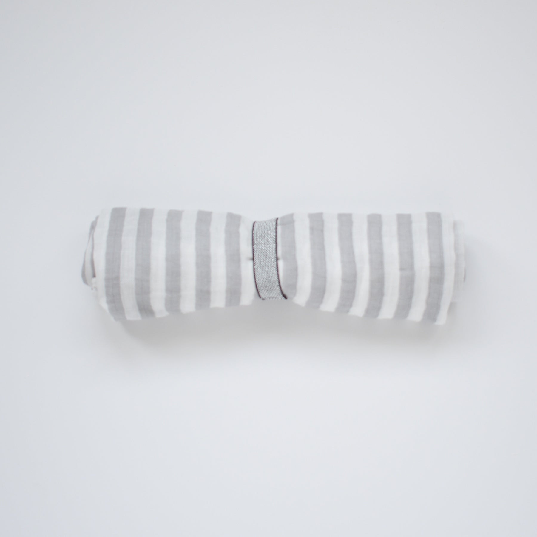 Extra large supersoft muslin square in grey stripe. Generous 120cm x 120cm size; perfect for swaddling, using as a blanket, as a pram shade, and much more.