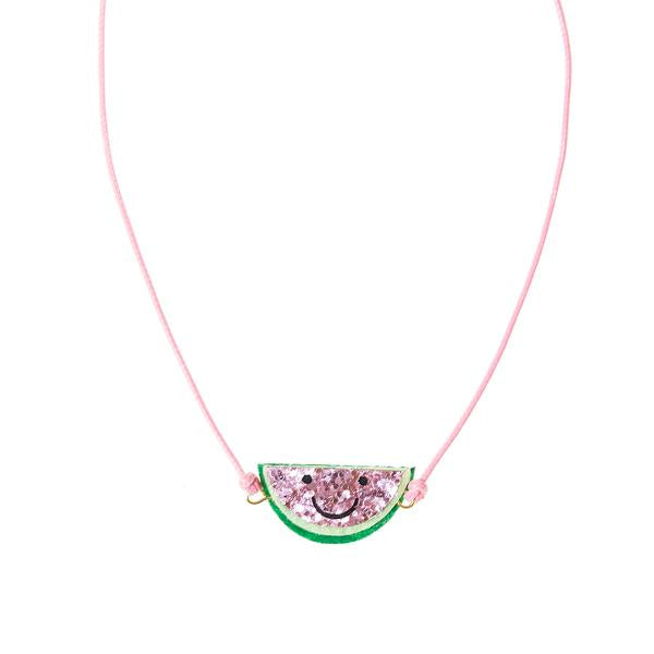 The happiest, glitteriest melon in town adorns this pretty cord necklace, with lobster clasp fastening and extender chain for varying necklace lengths