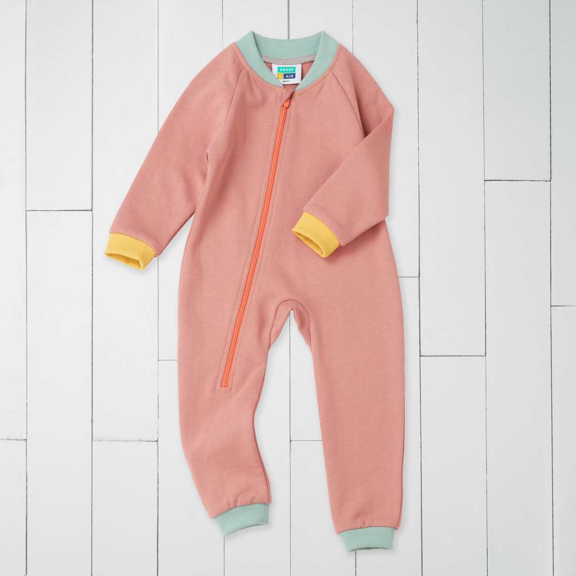 GRASS & AIR - Kids Adventure Onesie in Rose with contrast Zip