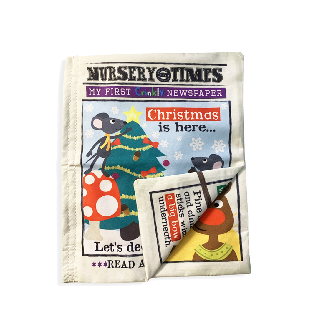 We love a mouse at Our Kid! Pair it with Christmas theme and you have this exquisite Crinkly Cloth baby newspaper. The perfect Christmas present for a baby.