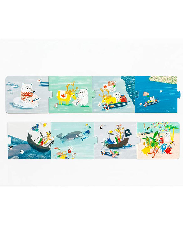 A polar bear sets sail for the Caribbean and meets animal pals along the way. But can you stop evil pirates from ramming the bear’s boat? And how will the group reach the tortoise’s birthday party while there’s a tornado brewing? Tell a different story each time you play!